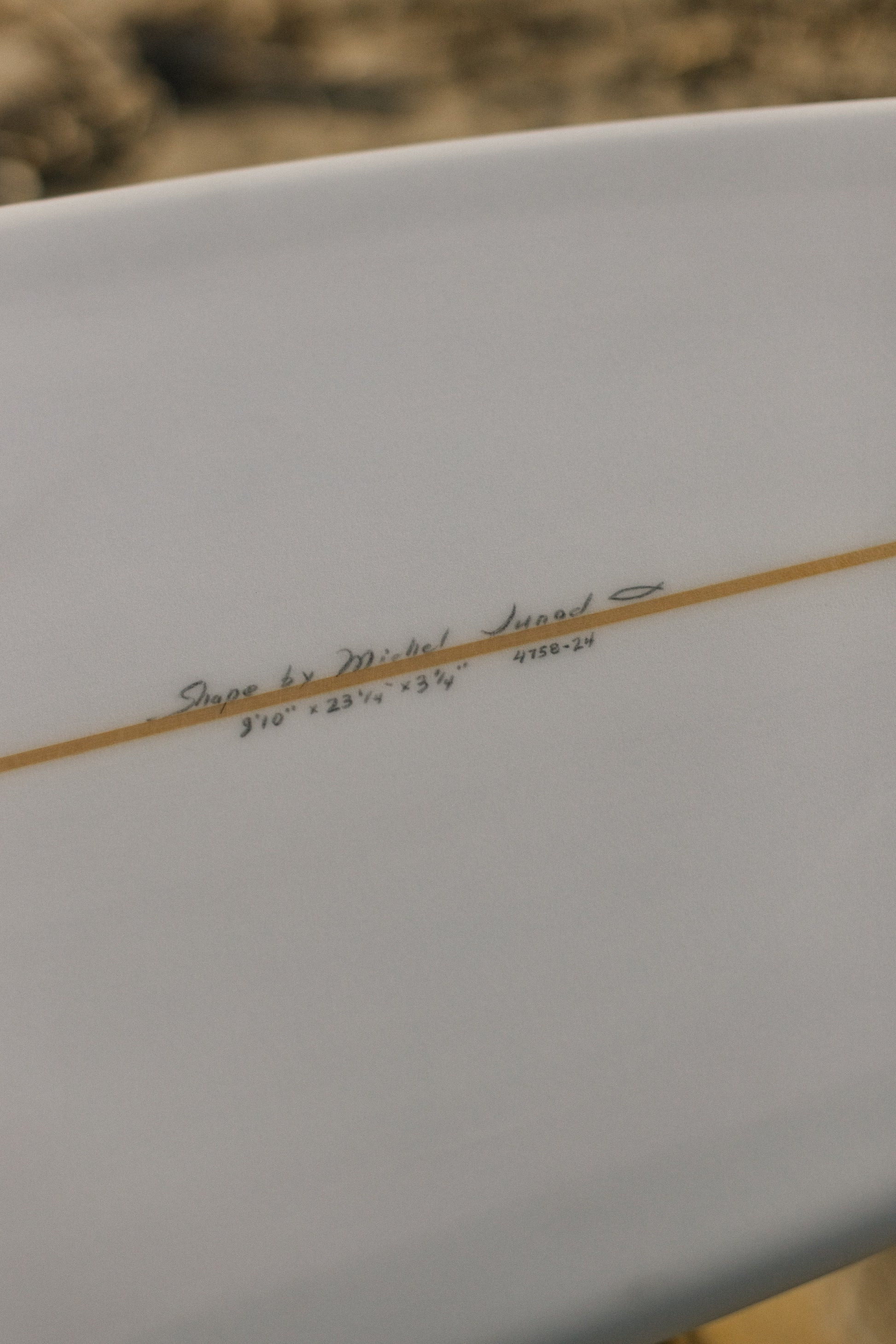 The Michel Junod CAN is a longboard built for maximum paddle power. CAN stands for “CAN catch anything!” Its super high volume and flat log design make it easy for weaker paddlers—or bigger surfers—to get into waves without struggle.
